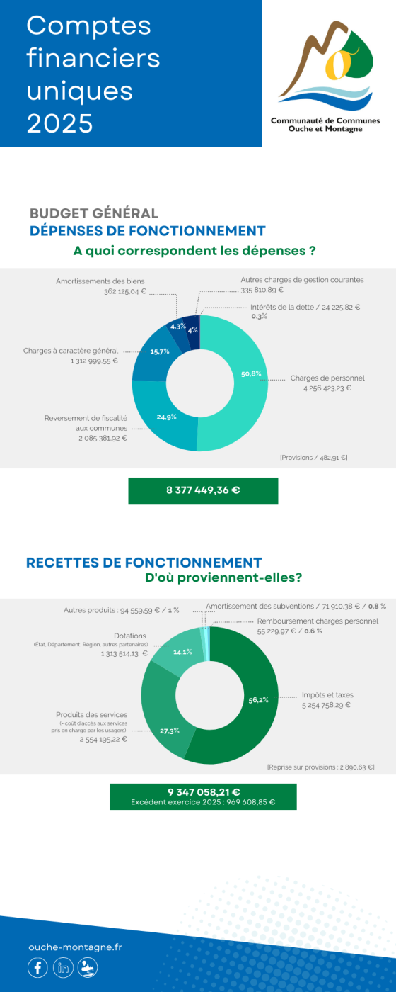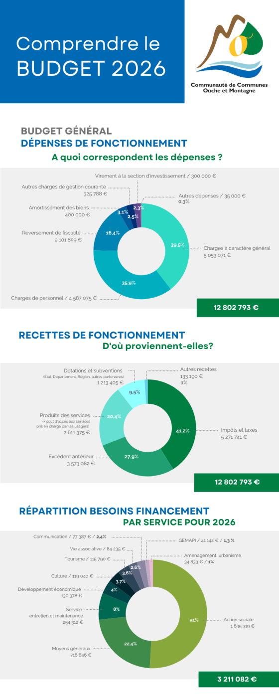 La Communauté de Communes Ouche et Montagne gère 5 budgets : le budget principal et 4 budgets annexes.