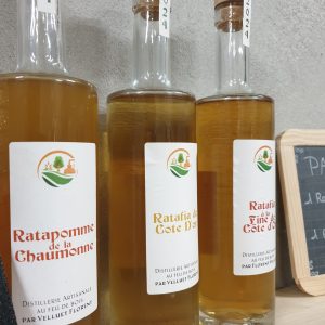 Après avoir obtenu l’agrément auprès des douanes, Florent Velluet a construit sa propre distillerie dans la zone de la Chaumone, en face de la déchèterie de Sombernon, ce qui lui permet de produire des eaux de vie et du ratafia de très grande qualité. Pour cela, notre distillateur (ou bouilleur ambulant) local s’approvisionne notamment en marc chez des vignerons de grands domaines viticoles. Il possède également un verger conservatoire, ce qui lui permet de produire sa boisson « signature », le ratapomme, du ratafia fabriqué à partir de pommes et non de marc de raisin.
